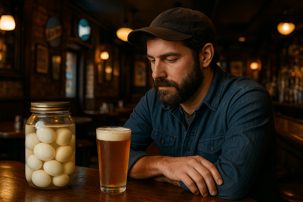 In those days, I could consume a succession of beers, sometimes with a shot of scotch, without waking up with vertigo and a pounding head. The places generally had great jukeboxes and beer nuts, popcorn, and strange pickled eggs floating in jars of some kind of liquid; I never saw anyone eat one.