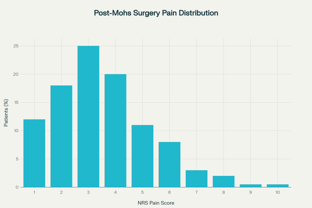 So I have some ability to research questions, such as, “Do some people have problems after Mohs surgery?” There is AI, databases, Google Scholar, and all that. It turns out that the idea that most people have only mild discomfort after Mohs is both true and not true at the same time. How could that be? This is going to require a little science to explain, but I promise to be gentle.