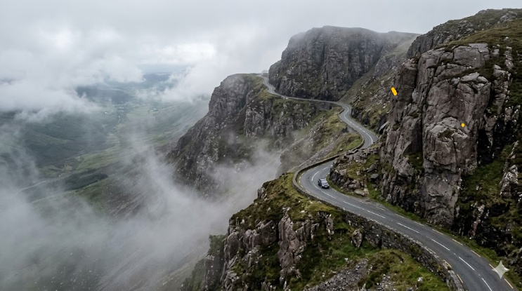 And then there are the speed limits. It is almost never less than 50 kph unless you are in a village, and once you get on the open road, it’s often about 100 kph. It’s so narrow that on a number of occasions I could hear the vegetation brushing the side of the car. The worst was when I got so close that my passenger-side mirror collided with not one but two side views of parked cars. We stopped, and miraculously, nobody was damaged that I could tell. The Irish don’t seem phased by the speed. This became abundantly clear when we were coming into Ballyvaughan on the locally famous Corkscrew Hill. Here it is: