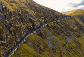 A long section is one lane with a sheer drop to the left. If you see a car coming from the other direction, you look for a turn-off and pull in and hope there is enough space for the other vehicle to squeeze by. A couple times there was only a few inches of clearance, and I thought that maybe I had finally pushed my luck too far. But the Gods of Ireland were merciful, and we somehow got to the bottom of the glen and headed up the road to County Clare.
